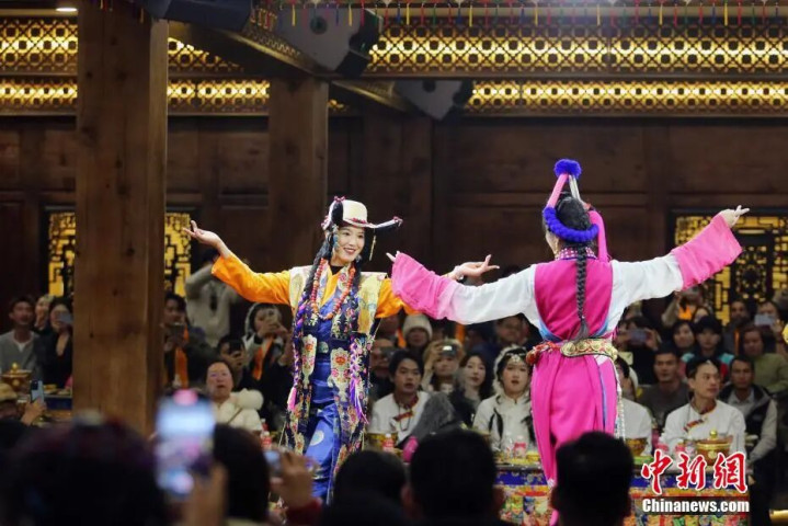 香格里拉演员为游客进行表演。中新社记者 黄兴鸿 摄